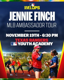 Youth softball clinic hosted by Rangers Youth Academy coaches and MLB Softball Ambassador, Jennie Finch!